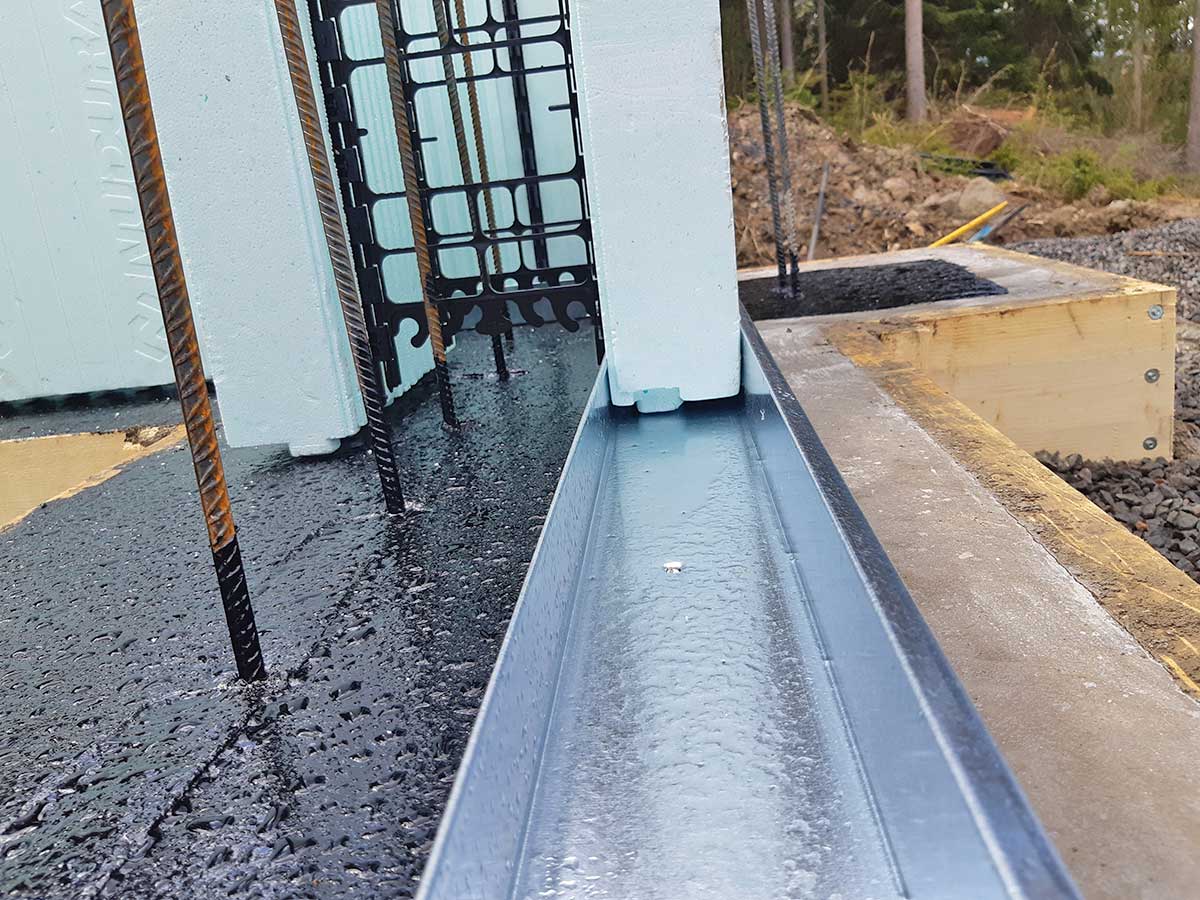 Lietoon on rakenteilla hirsitalo. Nordicformin urakkaan kuului tehdä kellarikerros. Valoimme ensin anturan, jonka päälle teimme Nudura-EPS-harkoista kellarin. Valoimme seinät kerralla ja asensimme päälle ontelolaatat. Kellarissa on maapaineseinä. Tämän päälle tullaan pystyttämään hirsitalo. Koko projekti kesti viikon verran.